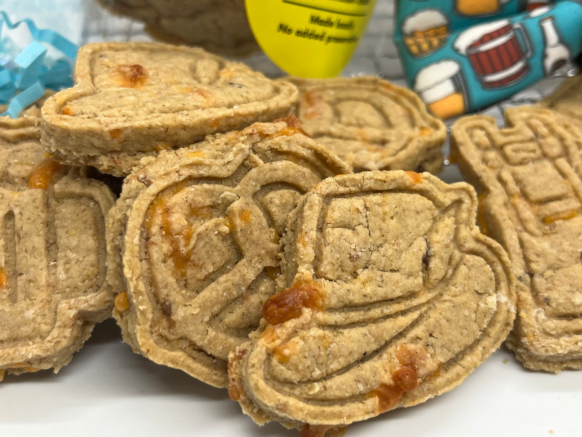 Celebrate the spirit of Oktoberfest with our OKTOBERFEST Dog Treats! Featuring bold flavors like bark-worthy Bark Wurst, and Applesauce Pretzels (with spent grains), these treats bring the festival fun straight to your pup’s bowl. Crafted to excite adventurous dogs, each bite combines savory and sweet for a tasty twist on tradition. Perfect for dogs who dare to snack differently and make every day a celebration.