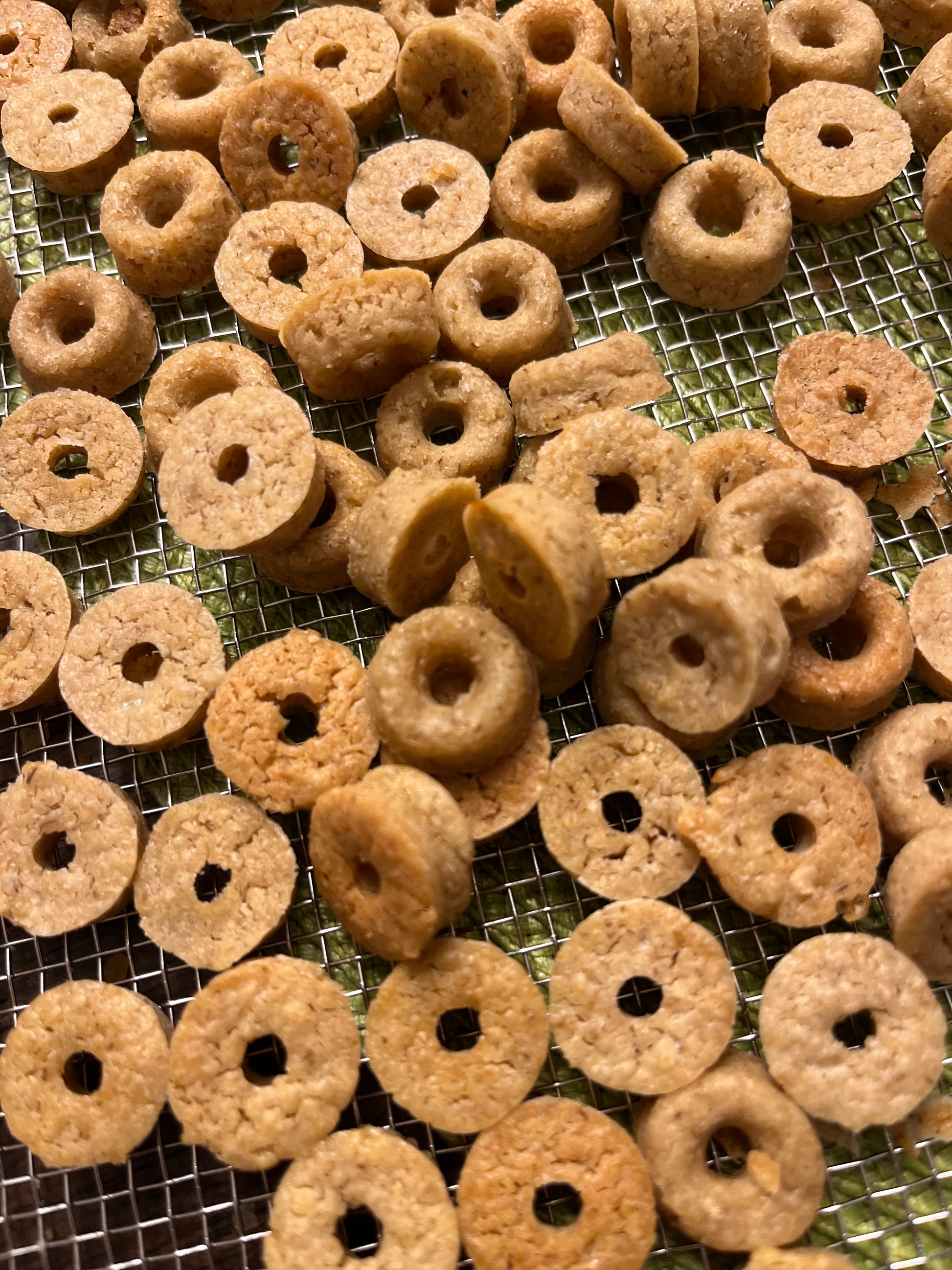 3oz heat sealed bags with fun mini donut shaped treats. Our mini donut shaped treats are a favorite to control snacks and for training!