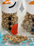 Slide into the holiday spirit with our delightful Snowman Holiday Bags! Each festive bag is packed with our beloved mini donut-shaped treats that'll have your pup doing a happy dance. Perfect for spreading cheer this season, these charming snowman-themed packages make tail-wagging gifts that combine fun packaging with tasty rewards. Your furry friend will love unwrapping the joy inside!