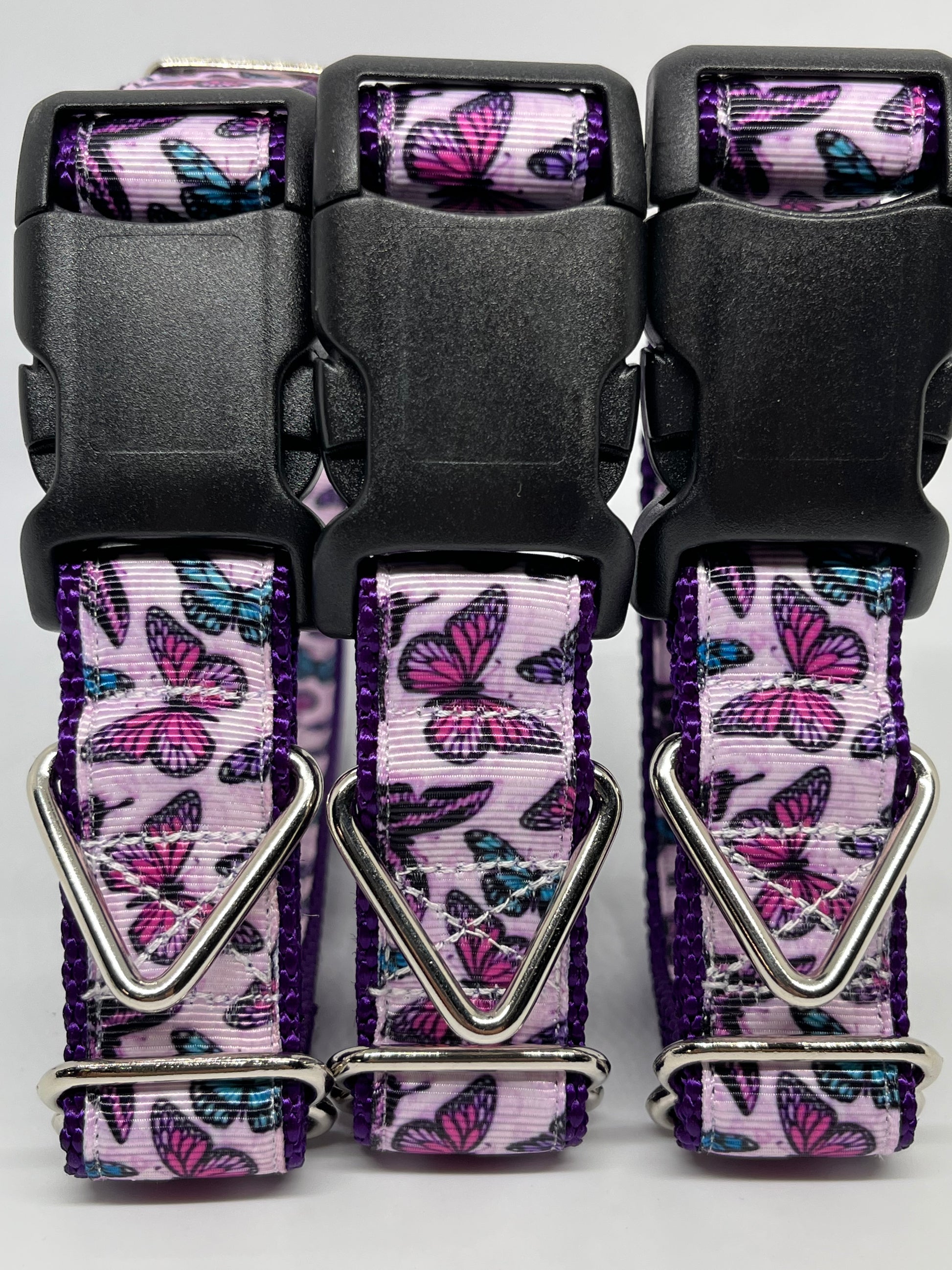 Let your pup flutter with style in this charming butterfly dog collar. Featuring vibrant butterfly designs, this collar adds a playful touch to any dog's wardrobe while providing secure, comfortable wear. Perfect for walks, play dates, or photo ops, it's an easy way to showcase your dog's personality.
