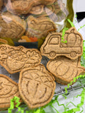 Fun festive shapes for fall. Each measured approx 1.5-2 inches. Each bag has 9oz of fresh baked treats that your dog is gonna love!