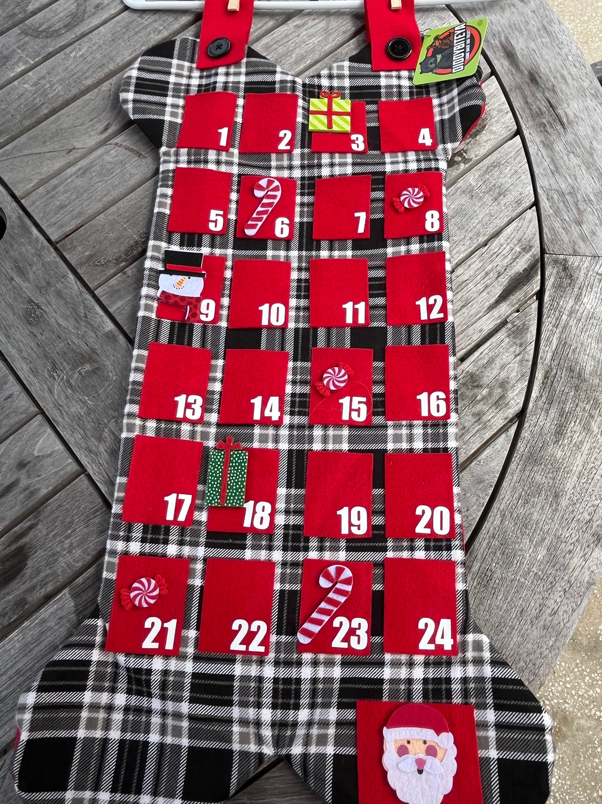 Celebrate the countdown to the holidays with the Black & White Plaid Holiday Advent Calendar for dogs! Each day reveals a delicious surprise (human provides) that will keep your furry friend excited and tail-wagging. Featuring a charming plaid design, this advent calendar adds a festive flair to your pup’s daily treat routine. Make the season merry and playful, one tasty treat at a time!