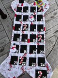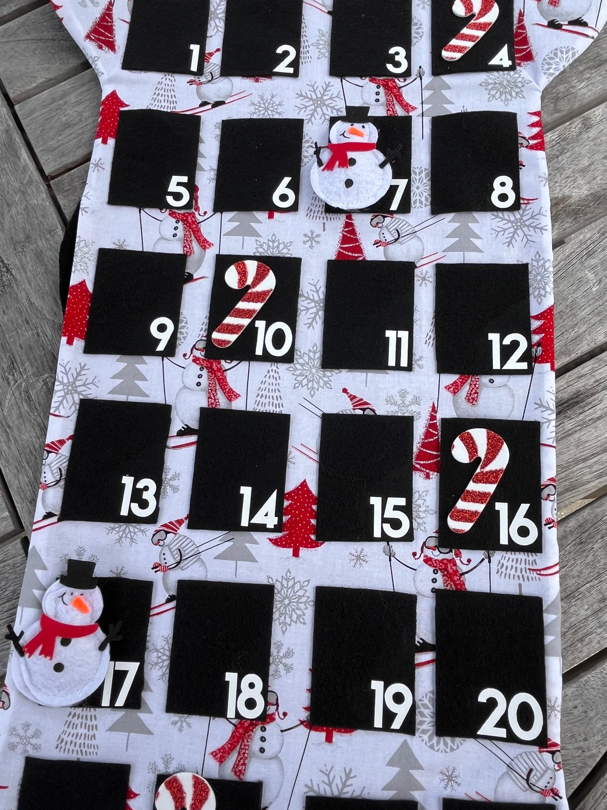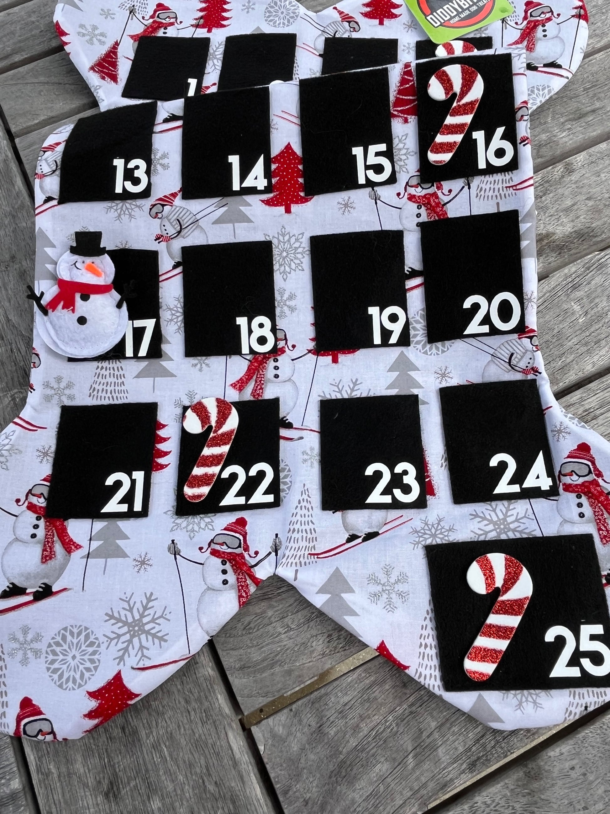 Handmade each calendar measures approx 2ft x 1.5ft. Fun festive cotton fabric with 25 felt pockets and felt decorations. Treats not included.