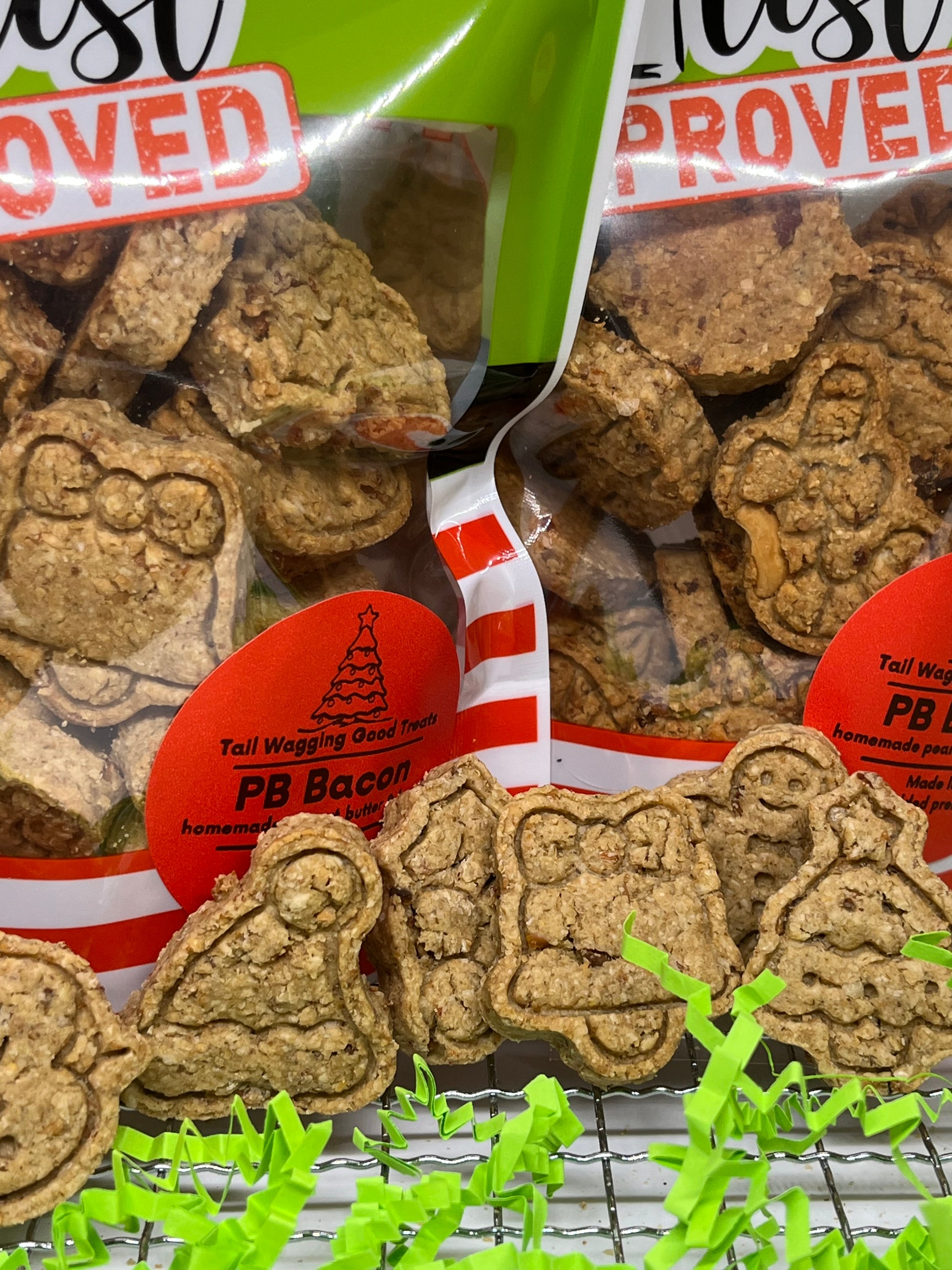 Treat your furry friend to a taste sensation with our PB & Bacon Dog Treats! Handmade with love, these peanut butter and bacon delights will have your dog begging for more. Perfect for training or just as a special treat, these homemade goodies are sure to make your pup's tail wag with joy. Woof!